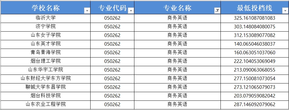 2025年山东专升本部分院校商务英语专业录取分数线