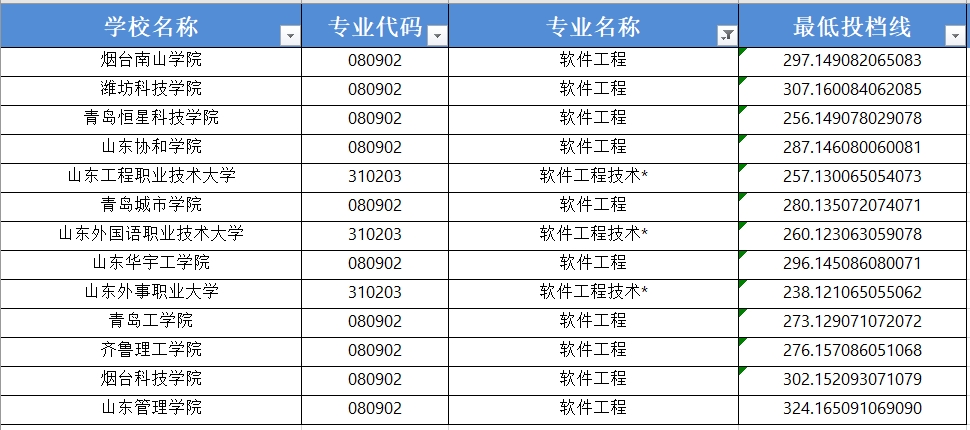 2025年山东专升本部分院校软件工程专业的录取分数线:潍坊科技学院:307 分,山东管理学院 :324 分,潍坊科技学院307分,更多详细信息看下图: