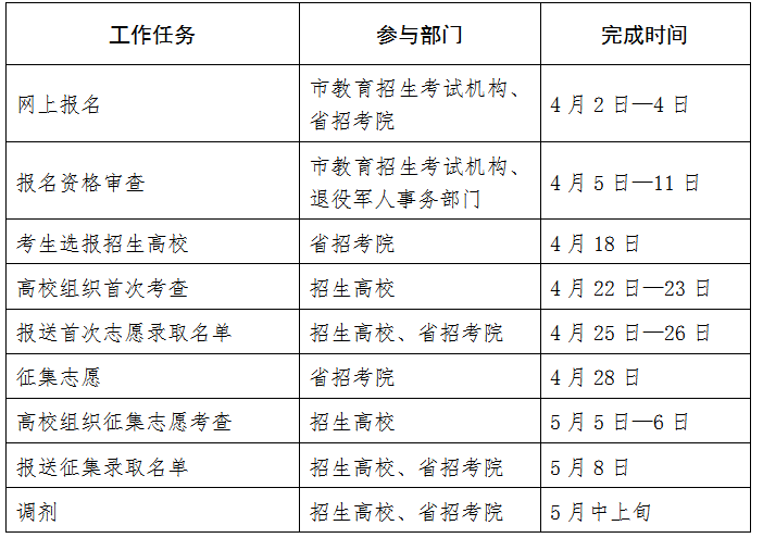 表2 退役大学生士兵免试工作日程