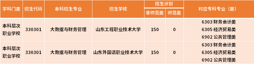 山东专升本大数据与财务管理对应专科专业有哪些?